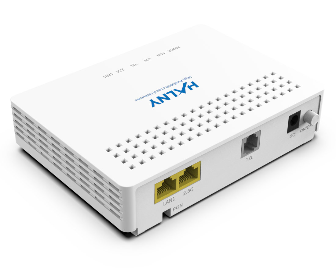 HALNy HL-2BV provides one GPON port (SC/APC type), 2,5-Gigabit and 1-Gigabit Ethernet ports. All units have Layer 3 (HGU* / Router / NAT) and Layer 2 support.