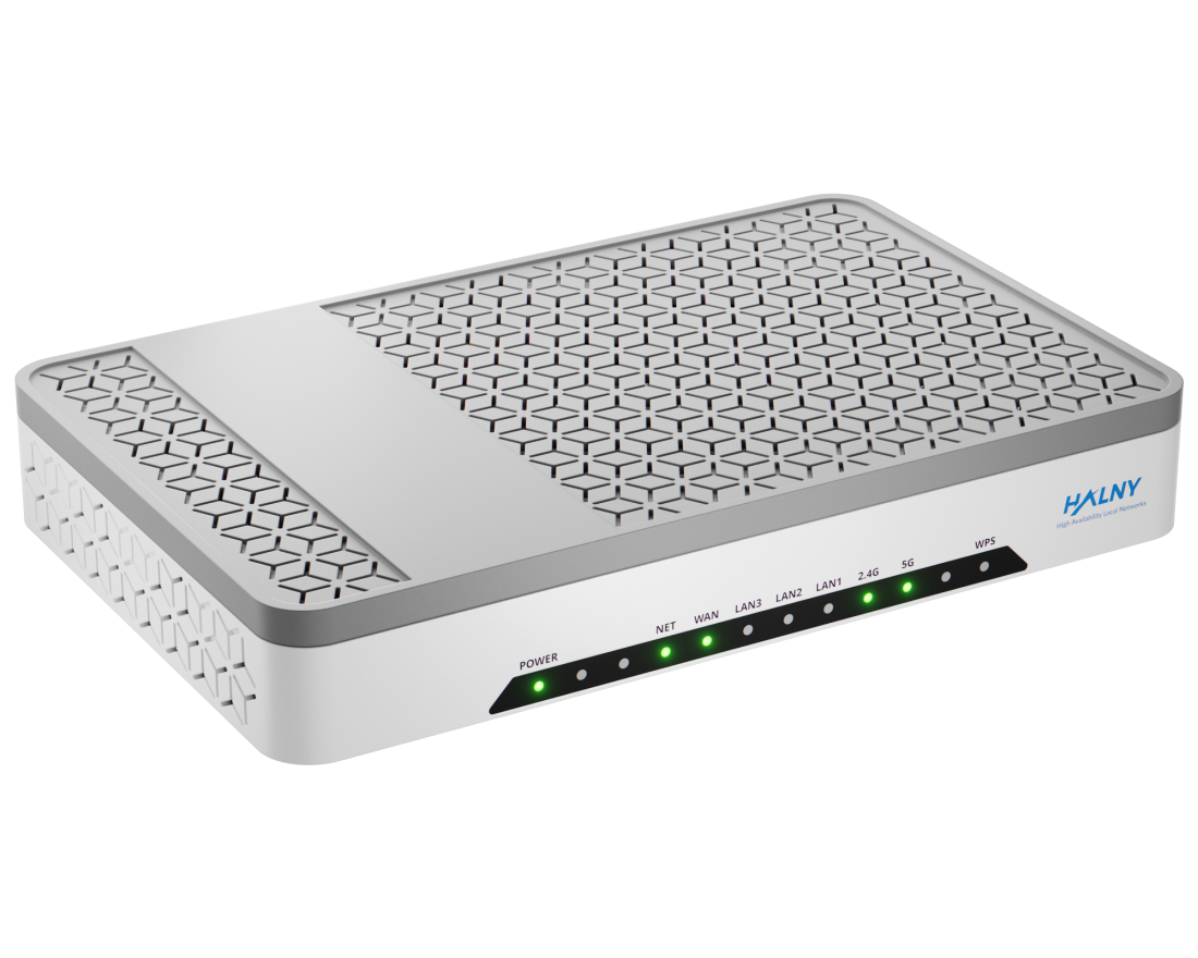 HALNy HL-4BX3V-F provides one GPON port, one 2.5Gigabit Ethernet port, three Gigabit Ethernet ports, WIFI 6 3000AX (2.4G and 5G) Wireless interface with internal antennas and one Voice FXS ports. This gives possibility to support full triple play services for high speed Internet access, IPTV and voice.